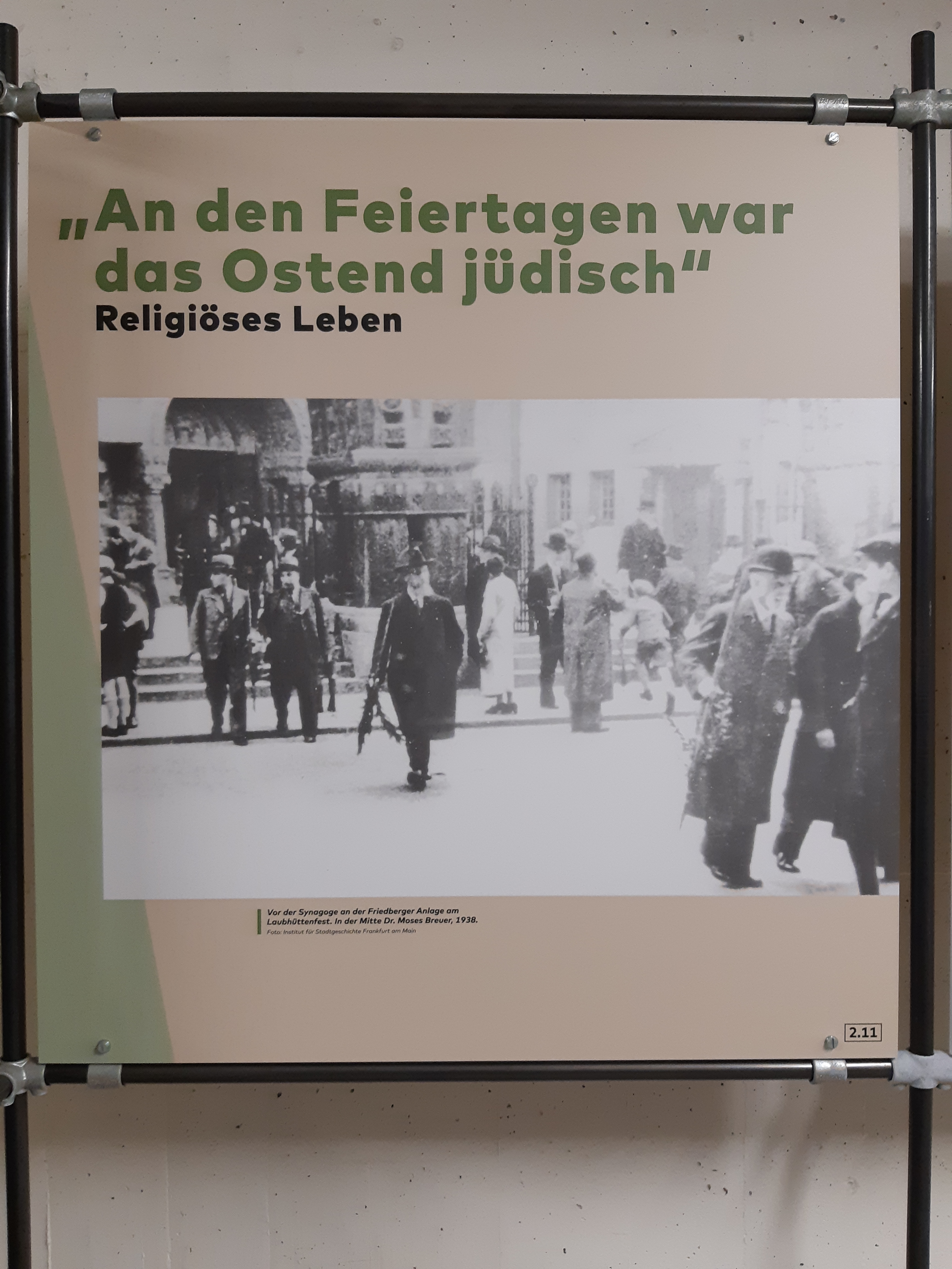 Beim Besuch des Hochbunkers an der Friedberger Anlage hat uns der weibliche Guide mitgenommen auf eine Zeitreise durch das jüdische Leben im Frankfurter Ostend. Kenntnisreich ermöglichte sie uns Einblicke in das Alltagsleben der Frankfurter Juden seit der ersten Ansiedlung jüdischer Menschen im Mittelalter bis zum Errichten eines Gedenkortes an der Stelle der ehemaligen Ostend Synagoge erst Jahrzehnte nach dem Ende des Zweiten Weltkriegs in den 90er Jahren.