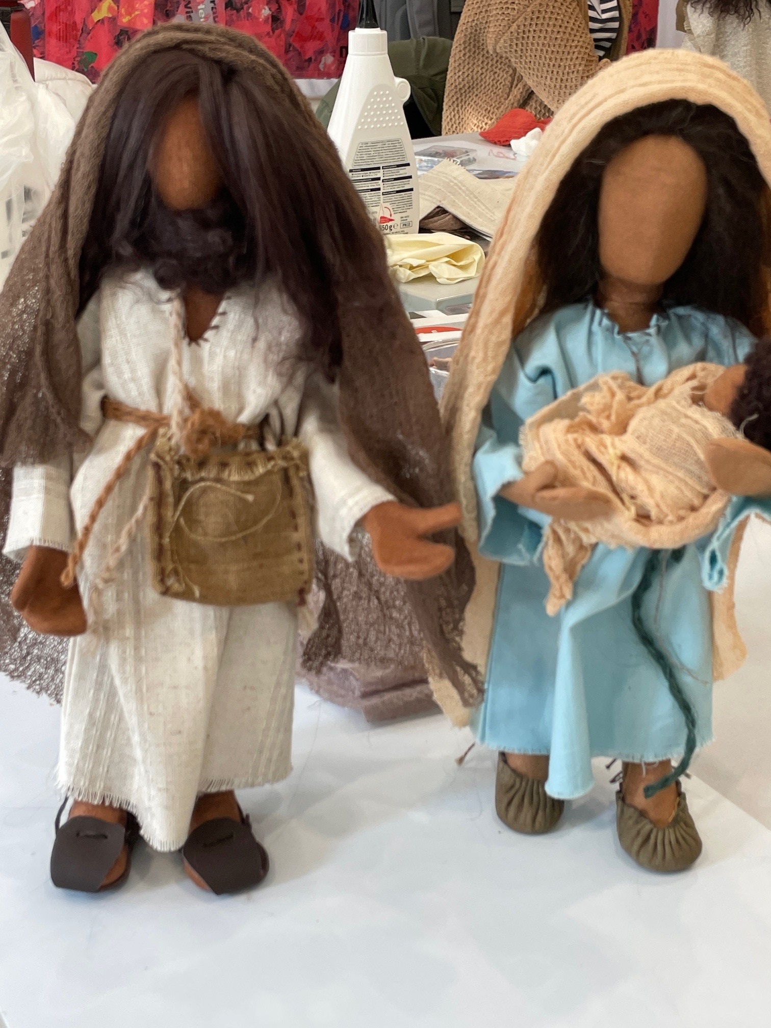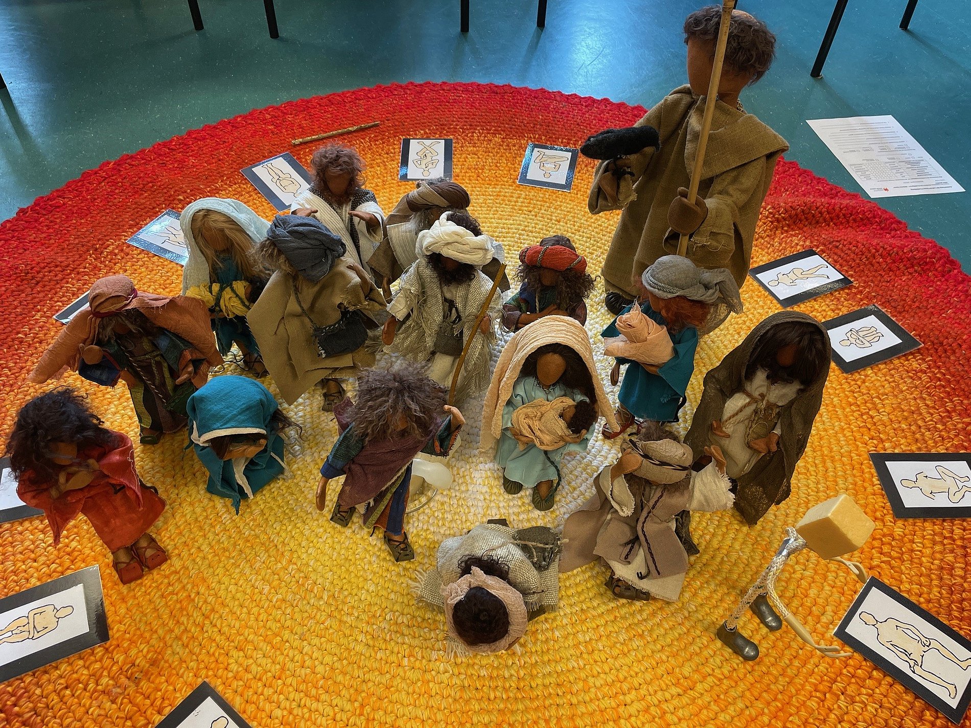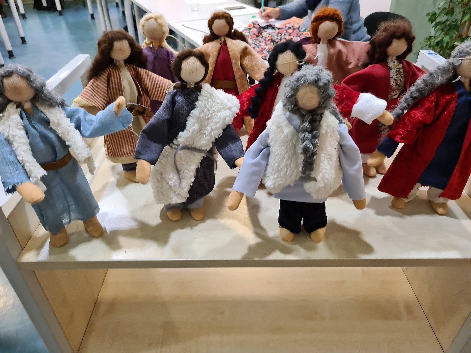 Und so entstanden im Laufe von neun Arbeitsstunden 15 wunderschöne Figuren, jede ganz eigen, einzigartig und perfekt zum anschaulichen und einprägsamen Nacherzählen biblischer Geschichten. Bis zum späteren Nachmittag hatte jede Figur ihre eigene Optik und war den Handwerkerinnen ans Herz gewachsen.