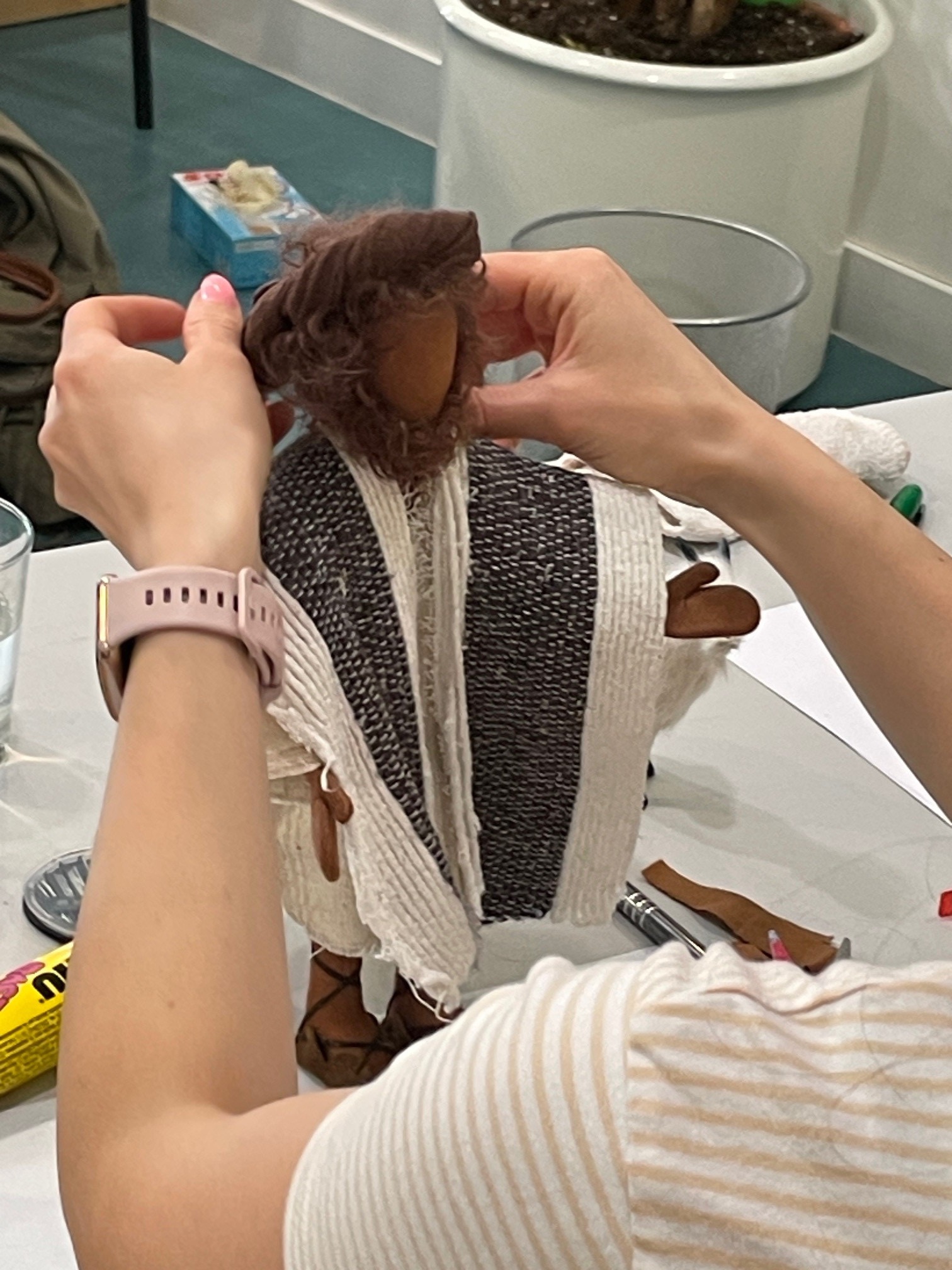 Einen ganzen Tag lang wurde geschnitten, genäht, geklebt, gebogen, geknotet und gestaltet. Auch in diesem Kurs wurden, so wie fast in jedem Schulhalbjahr vor der Pandemie, unter fachkundiger Anleitung von Rita Merkel und Lene Pockrandt vielgestaltige, biblische Erzählfiguren gestaltet. Und wer denkt, ein Tag sei lang, der hat noch nie an einer Figurenwerkstatt teilgenommen. Die Zeit verging wie im Fluge und abgesehen von ein paar kurzen Verzweiflungs-Anflügen hatten alle sichtlich Freude am Tun.